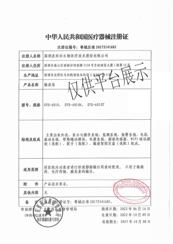 醫(yī)械網(wǎng)是一家提供輸液泵SYS-6010價(jià)格、參數(shù)介紹等信息的展示平臺(tái),為您提供優(yōu)質(zhì)的輸液泵SYS-6010產(chǎn)品,上海晚成醫(yī)療器械有限公司專注于各類醫(yī)療器械批發(fā)及零售,聯(lián)系電話:400-006-1850。