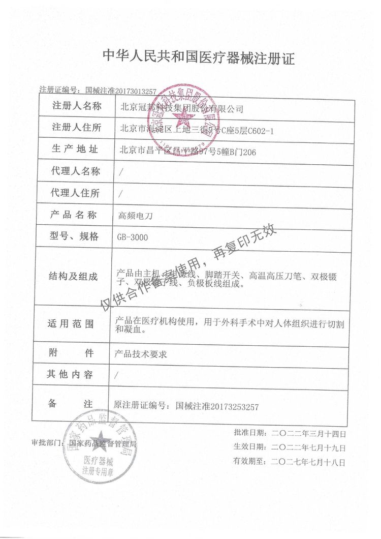 正品銷售 北京冠邦GB-3000 高頻電刀(300W)單雙級(jí)多功能多科室適用普外,歡迎聯(lián)系訂購(gòu)。